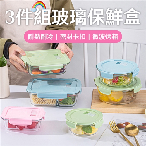 格雅 三件式 玻璃保鮮盒 耐熱 耐冷 微波 烤箱 冷藏 密封 防漏 收納 健康 opc019