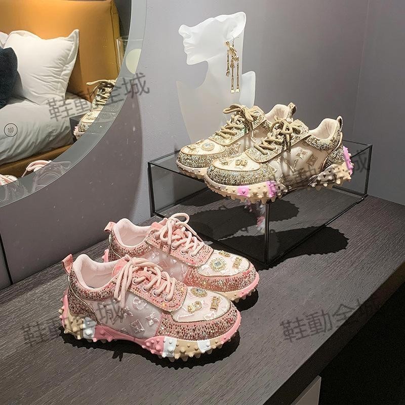 【❤台灣出貨❤】巴黎老爹鞋女 增高休閑鞋厚底潮ins復古水鑽設計感拼色運動鞋