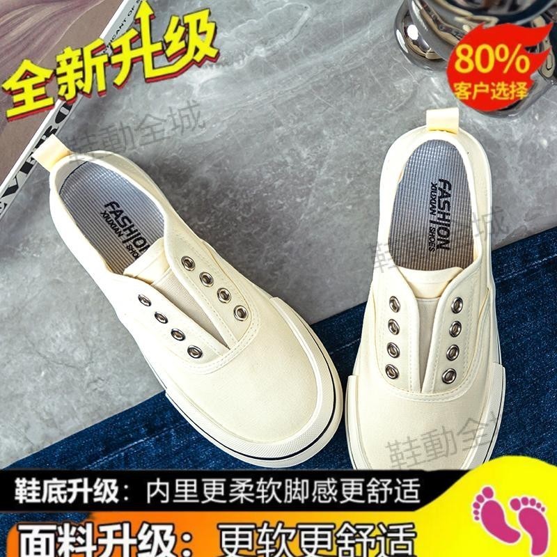 【❤台灣出貨❤】2024新款韓版老北京布鞋女透氣百搭純色厚底帆布鞋一腳蹬休閑單鞋
