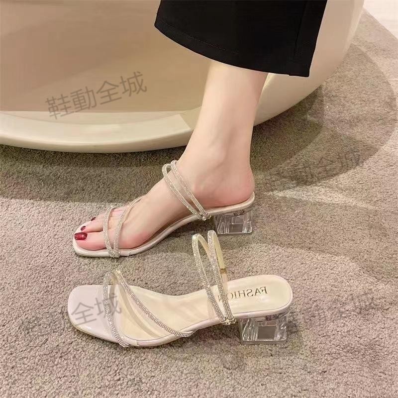 🎯法式水鑽涼拖女🔥粗跟仙女風拖鞋|夏季外穿氣質款|防滑軟底設計|臺灣直送☄️