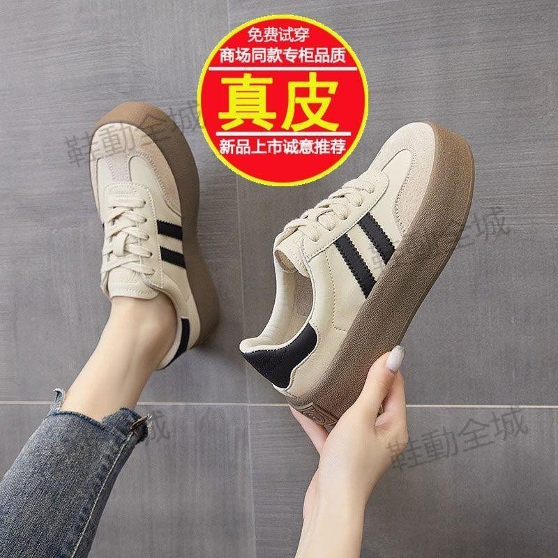 【❤台灣出貨❤】皮面厚底德訓小白鞋女2024夏天新款復古阿甘鞋百搭休閑運動板鞋