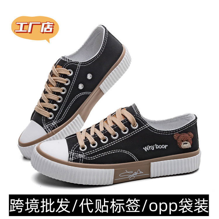 產品類別:帆布鞋 適用年齡段:成年 鞋面材質:帆布 鞋底材質:橡膠 適用性別:女 鞋幫高度:低幫 鞋底工藝:硫化鞋 穿著方式:前系帶 流行元素:花朵 圖騰 功能:透氣 圖案:卡通 適合季節:春季 內裡材質:棉質 風格:韓版 鞋跟形狀:平跟 毛重:0.75 顏色:黑色 米色 尺碼:35 36 37 38 39 40 閉合方式:系帶