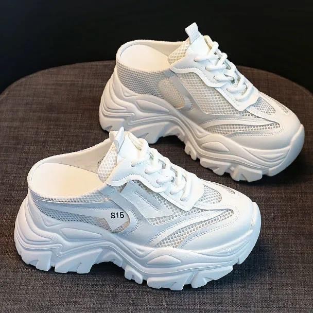 🔥隱增高包頭半拖☄️網紗涼感老爹鞋🎯厚底外穿拖鞋💫防滑軟Q涼鞋台灣出貨
