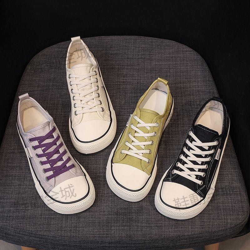 【❤台灣出貨❤】芒果頭帆布鞋女低幫透氣單鞋2024夏季新款日系厚底煙灰紫小白板鞋