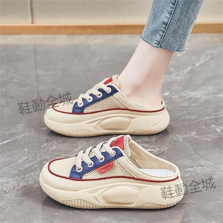 【❤台灣出貨❤】涼鞋女夏外穿網紗超火厚底百搭懶人一腳蹬包頭半拖鞋時尚鞋拖單鞋