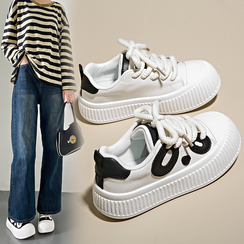 💫熊貓紋厚底板鞋🔥6cm松糕休閒鞋☄️韓版學生日常鞋🎯百搭防潑水鞋台灣出貨