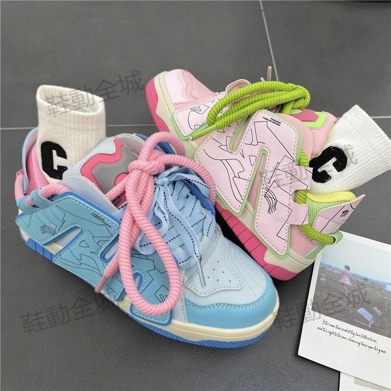 【❤台灣出貨❤】小眾多巴胺穿搭麵包鞋女新款復古百搭休閑鞋嘻哈情侶厚底板鞋